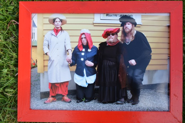 We felt great about our outfits, but a little unsure of the location we picked, a house near Munch’s, but not Munch’s house itself which was the “correct” location (which the blue team got right). We threw together our outfits which looked great, and snapped our photo. Forty-five minutes later we’re ready for results. Seeing the Blue Team photo, I’m confident – they had the right location, but our attention to detail in the outfits was spot on.
