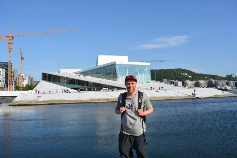 We come back to our Oslo Grand Hotel (learned last night that rooms are as much as $500/night), and I decide to walk to the Opera House! It’s a beautiful spot on the water, and there’s a lot of development all around the area. I can’t wait to see what this city looks like in 5 years. Also cool to be visiting the Oslo Opera House less than 5 months after visiting the Sydney Opera House!