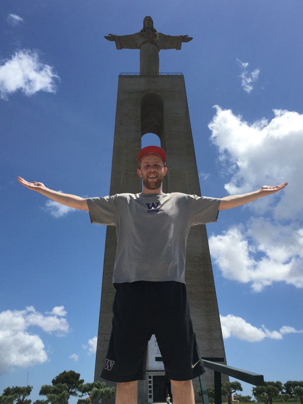 The walk through the neighborhoods to get there is another great one, and finally, I arrive below the statue. Rio’s Christ the Redeemer has long been on my bucket list – and this statue is nearly identical, and also located in a very cool location perched above a beautiful town on the water. This statue in particular was built to celebrate Portugal not getting involved in WWII.